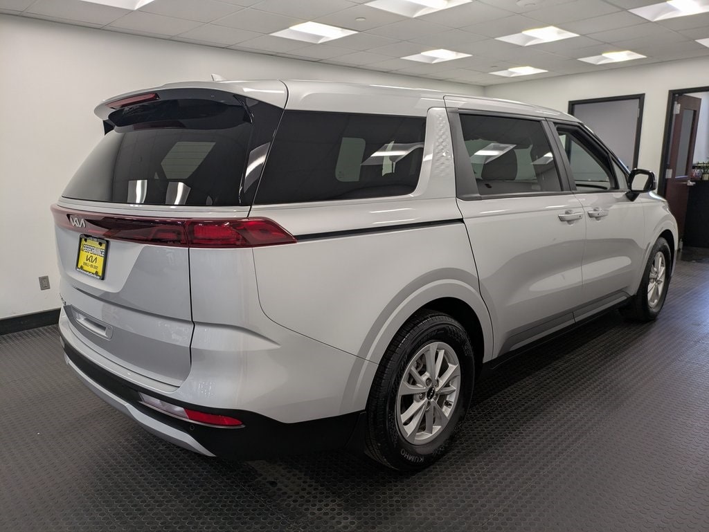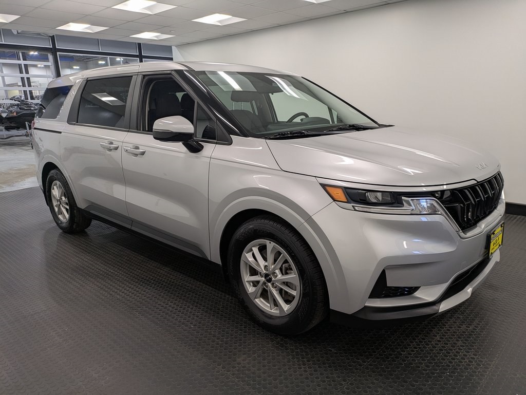 Certified. Silky Silver 2022 Kia Carnival LX FWD 8-Speed Automatic V6 3.51 Axle Ratio, 3rd row seats: split-bench, 4-Wheel Disc Brakes, 6 Speakers, ABS brakes, Air Conditioning, Alloy wheels, AM/FM radio, Apple CarPlay & Android Auto, Auto High-beam Headlights, Brake assist, Bumpers: body-color, Carpeted Floor Mats (7-Passenger), Cloth Seat Trim, Delay-off headlights, Driver door bin, Driver vanity mirror, Dual front impact airbags, Dual front side impact airbags, Electronic Stability Control, Four wheel independent suspension, Front anti-roll bar, Front Bucket Seats, Front Center Armrest, Front reading lights, Fully automatic headlights, Heated door mirrors, Illuminated entry, Knee airbag, Leather Shift Knob, Low tire pressure warning, Occupant sensing airbag, Outside temperature display, Overhead airbag, Overhead console, Panic alarm, Passenger door bin, Passenger vanity mirror, Power door mirrors, Power steering, Power windows, Radio: AM/FM Audio System, Rear air conditioning, Rear anti-roll bar, Rear reading lights, Rear window defroster, Rear window wiper, Reclining 3rd row seat, Remote keyless entry, Security system, Speed control, Speed-sensing steering, Split folding rear seat, Spoiler, Steering wheel mounted audio controls, Tachometer, Telescoping steering wheel, Tilt steering wheel, Traction control, Trip computer, Turn signal indicator mirrors, Variably intermittent wipers, Wheel Locks, Wheels: 6.5J x 17" Clear Silver Painted Alloy.