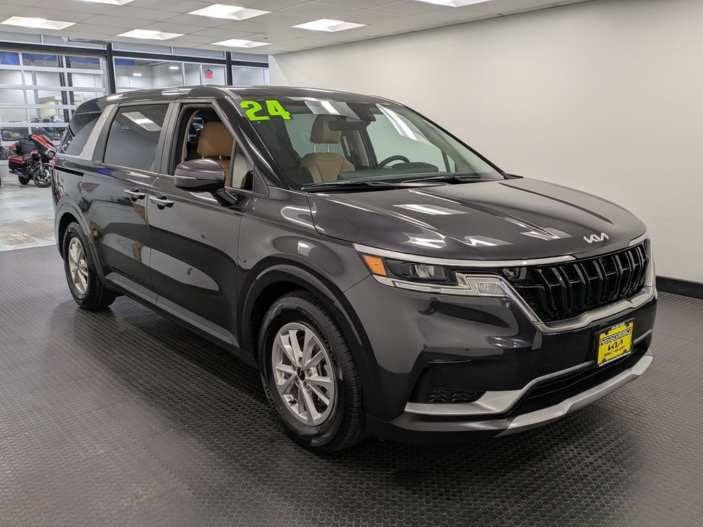 Certified. Panthera Metal 2024 Kia Carnival LX FWD 8-Speed Automatic V6 3.51 Axle Ratio, 3rd row seats: split-bench, 4-Wheel Disc Brakes, 6 Speakers, ABS brakes, Air Conditioning, Alloy wheels, AM/FM radio, Apple CarPlay & Android Auto, Auto High-beam Headlights, Brake assist, Bumpers: body-color, Cargo Net, Cargo Tray, Cloth Seat Trim, Delay-off headlights, Driver door bin, Driver vanity mirror, Dual front impact airbags, Dual front side impact airbags, Electronic Stability Control, Four wheel independent suspension, Front anti-roll bar, Front Bucket Seats, Front Center Armrest, Front reading lights, Fully automatic headlights, Heated door mirrors, Illuminated entry, Knee airbag, Leather Shift Knob, Low tire pressure warning, Occupant sensing airbag, Outside temperature display, Overhead airbag, Overhead console, Panic alarm, Passenger door bin, Passenger vanity mirror, Power door mirrors, Power steering, Power windows, Radio: AM/FM Audio System, Rear air conditioning, Rear anti-roll bar, Rear reading lights, Rear window defroster, Rear window wiper, Reclining 3rd row seat, Remote keyless entry, Security system, Speed control, Speed-sensing steering, Split folding rear seat, Spoiler, Steering wheel mounted audio controls, Tachometer, Telescoping steering wheel, Tilt steering wheel, Traction control, Trip computer, Turn signal indicator mirrors, Variably intermittent wipers, Wheel Locks, Wheels: 6.5J x 17" Clear Silver Painted Alloy.