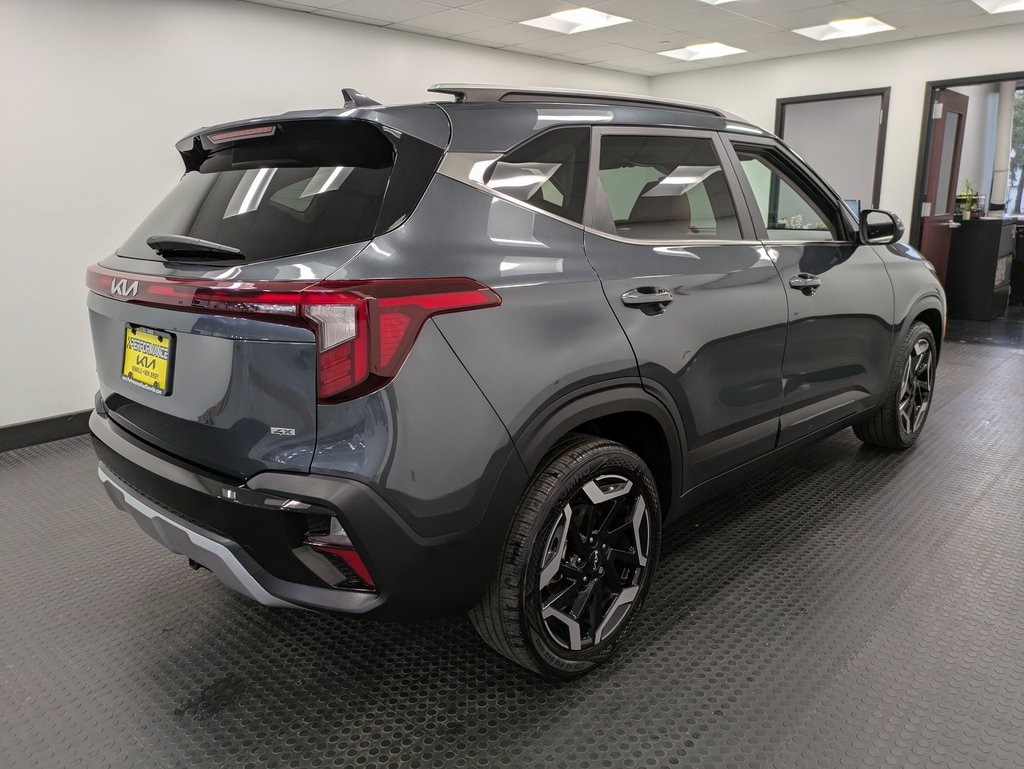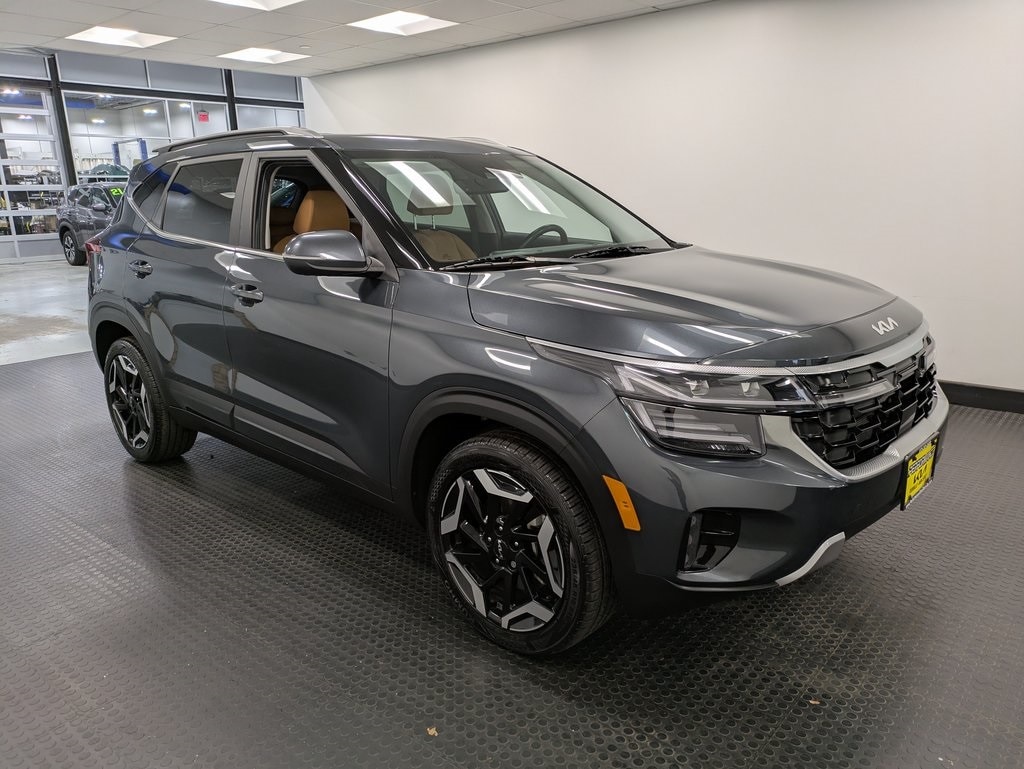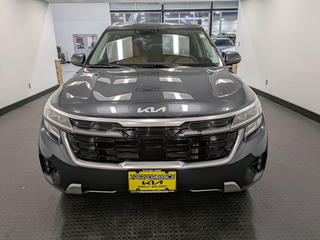Certified. Gravity Gray 2024 Kia Seltos SX AWD 8-Speed Automatic I4 3.510 Axle Ratio, 4-Wheel Disc Brakes, 8 Speakers, ABS brakes, Air Conditioning, Alloy wheels, AM/FM radio: SiriusXM, Apple CarPlay & Android Auto, Auto High-beam Headlights, Auto-dimming Rear-View mirror, Automatic temperature control, Brake assist, Bumpers: body-color, Carpet Floor Mats, Delay-off headlights, Driver door bin, Driver vanity mirror, Dual front impact airbags, Dual front side impact airbags, Electronic Stability Control, Emergency communication system: 911 Connect, Exterior Parking Camera Rear, Four wheel independent suspension, Front anti-roll bar, Front Bucket Seats, Front Center Armrest, Front fog lights, Front reading lights, Fully automatic headlights, Gentle Brown Interior Color Package, Heated door mirrors, Heated Front Bucket Seats, Heated front seats, Illuminated entry, Leather Shift Knob, Leather steering wheel, Low tire pressure warning, Navigation System, Occupant sensing airbag, Outside temperature display, Overhead airbag, Overhead console, Panic alarm, Passenger door bin, Passenger vanity mirror, Power door mirrors, Power driver seat, Power steering, Power windows, Radio: AM/FM/HD/Satellite Display System w/Navigation, Rear seat center armrest, Rear window defroster, Rear window wiper, Remote keyless entry, Security system, Sofino Premium Leatherette Seat Trim, Speed control, Speed-sensing steering, Split folding rear seat, Spoiler, Sport steering wheel, Steering wheel mounted audio controls, Tachometer, Telescoping steering wheel, Tilt steering wheel, Traction control, Trip computer, Turn signal indicator mirrors, Variably intermittent wipers, Wheels: 18" Alloy w/Machined Finish.