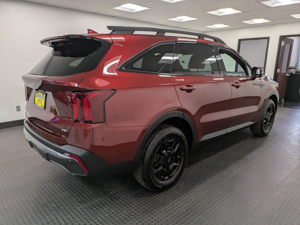 Certified. Dawning Red 2024 Kia Sorento X-Pro SX Prestige AWD 8-Speed DCT 2.5L I4 DGI Turbocharged DOHC 16V LEV3-SULEV30 281hp AWD, 12 Speakers, 3.316 Axle Ratio, 3rd row seats: split-bench, 4-Wheel Disc Brakes, ABS brakes, Air Conditioning, Alloy wheels, AM/FM radio: SiriusXM, Apple CarPlay & Android Auto, Auto High-beam Headlights, Auto-dimming Rear-View mirror, Automatic temperature control, Brake assist, Bumpers: body-color, Carpeted Cargo Mat w/Seatback Protection, Carpeted Floor Mats, Delay-off headlights, Driver door bin, Driver vanity mirror, Dual front impact airbags, Dual front side impact airbags, Electronic Stability Control, Emergency communication system: 911 Connect, Exterior Parking Camera Rear, Four wheel independent suspension, Front anti-roll bar, Front Bucket Seats, Front Center Armrest, Front dual zone A/C, Front fog lights, Front reading lights, Fully automatic headlights, Garage door transmitter: HomeLink, Heated & Ventilated Front Bucket Seats, Heated door mirrors, Heated front seats, Heated rear seats, Heated steering wheel, Illuminated entry, Knee airbag, Leather steering wheel, Low tire pressure warning, Memory seat, Navigation System, Occupant sensing airbag, Olive Brown Leather Package, Outside temperature display, Overhead airbag, Overhead console, Panic alarm, Passenger door bin, Passenger vanity mirror, Perforated Genuine Leather Seat Trim, Power door mirrors, Power driver seat, Power Liftgate, Power moonroof, Power passenger seat, Power steering, Power windows, Radio data system, Radio: AM/FM Bose Premium Audio System, Rain sensing wipers, Rear anti-roll bar, Rear reading lights, Rear side impact airbag, Rear window defroster, Rear window wiper, Remote keyless entry, Security system, Smart Key w/ Push Button and Remote Start, Speed control, Speed-sensing steering, Split folding rear seat, Spoiler, Steering wheel mounted audio controls, Tachometer, Telescoping steering wheel, Tilt steering wheel, Traction control, Trip computer, Turn signal indicator mirrors, Variably intermittent wipers, Ventilated front seats, Wheels: 7.0J x 17" Gloss Black X-Pro Alloy.