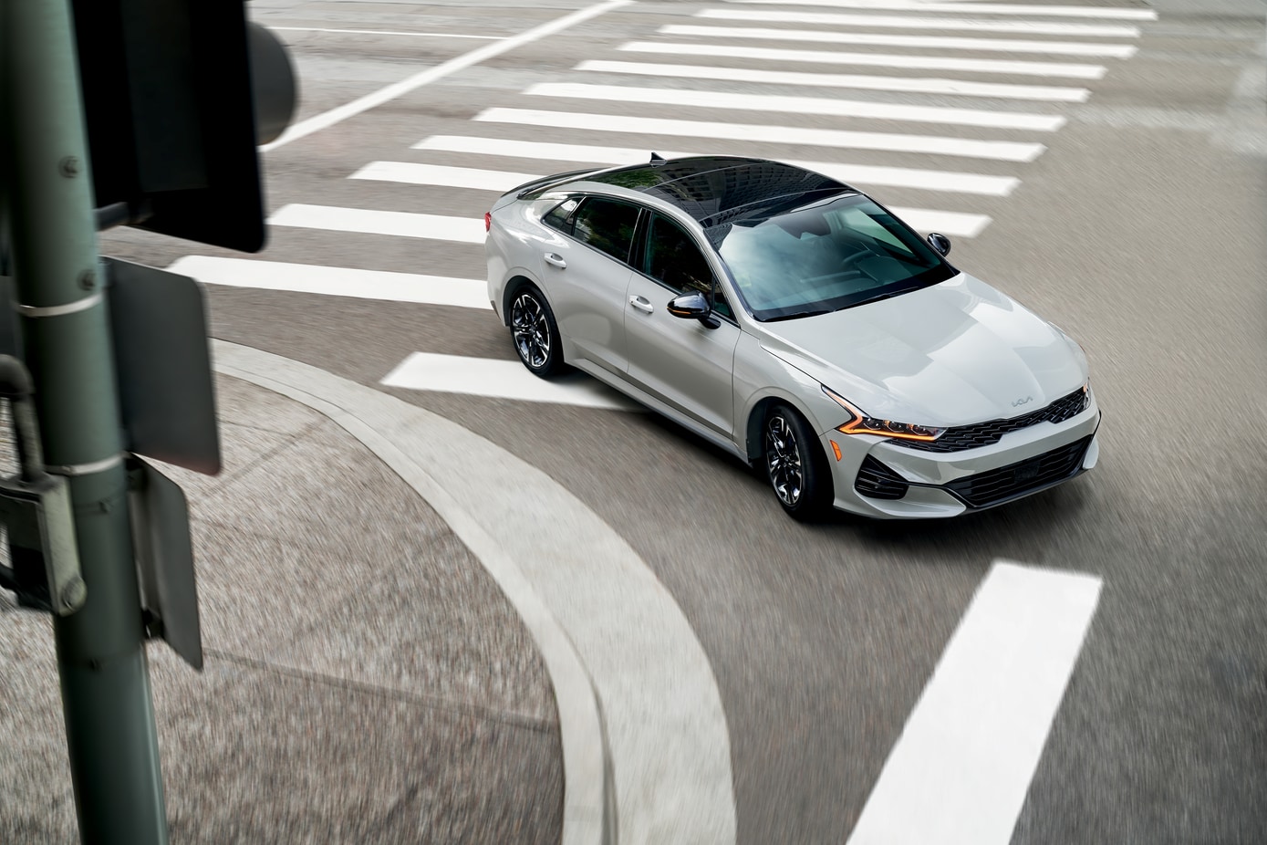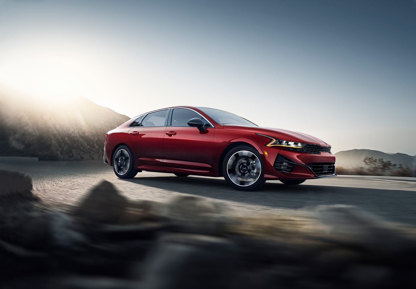 The K5's exterior design commands attention with its sleek lines, bold front fascia, and dynamic stance. Eye-catching details like the available gloss black alloy wheels and LED lighting signatures create a distinct look that sets the K5 apart. With its aerodynamic profile and athletic proportions, the K5 expresses a sense of motion even when parked. Get the head-turning design you crave in one of the best-selling sedans on the road.